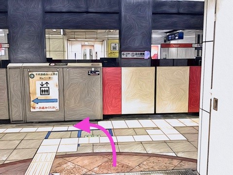 2号車1番扉(先頭から5両目)付近からエレベーターへ