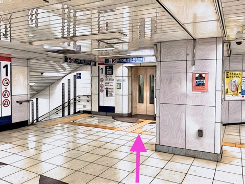 出入口2のエレベーターへ