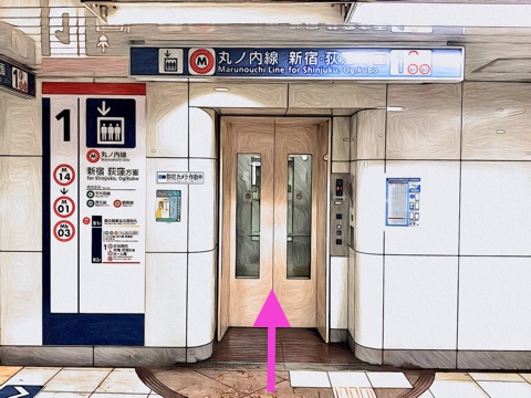 1番線が荻窪方面行きホーム(2号車1番扉/先頭から2両目)
