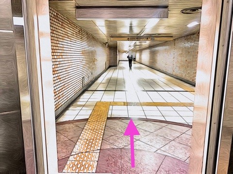6号車1番扉(先頭から1両目)付近のエレベーターへ
