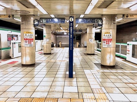 6番線が綾瀬方面行きホーム(1号車3番扉/先頭から10両目)