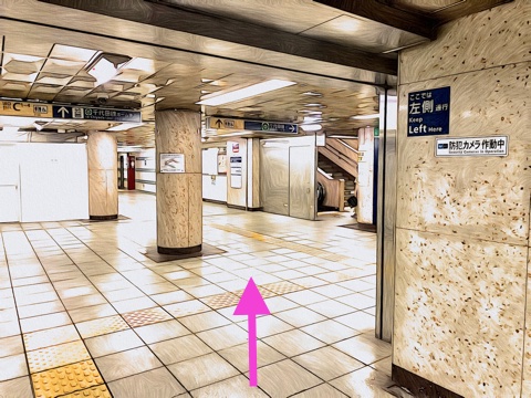 2号車3番扉(先頭から2両目)付近のエレベーターで改札階へ