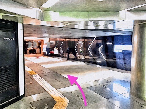 2号車1番扉(先頭から2両目)付近のエスカレーターで改札階へ