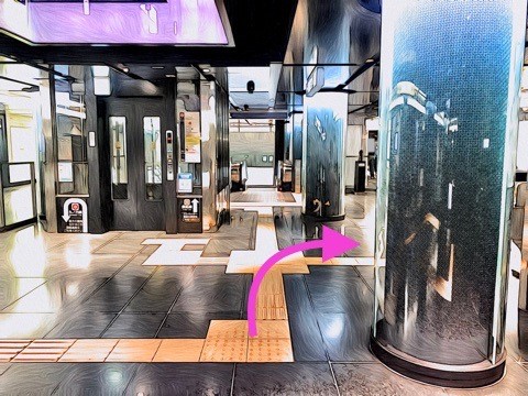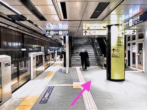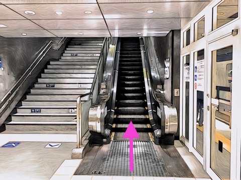2号車1番扉(先頭から2両目)付近のエスカレーターで改札階へ