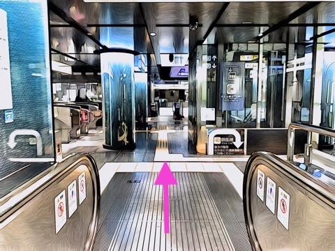 前方のエスカレーターで地上へ