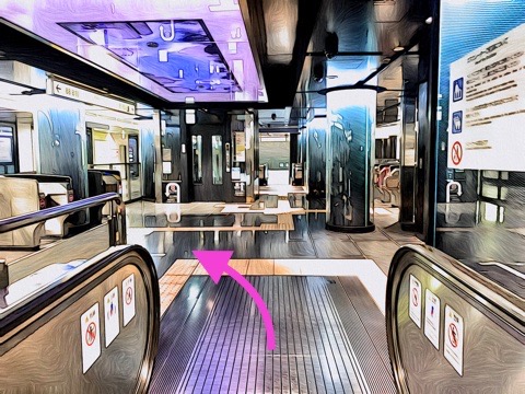 2号車1番扉(先頭から2両目)付近のエスカレーターで改札階へ