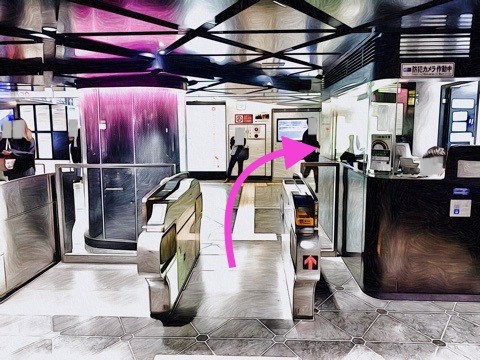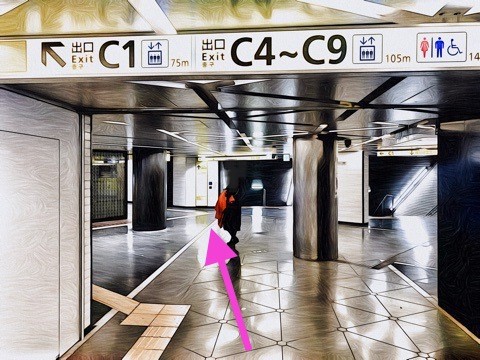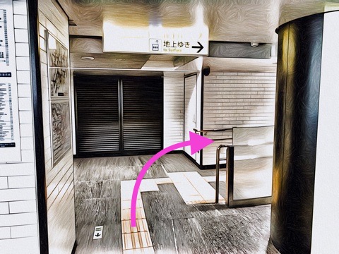 2号車1番扉(先頭から2両目)付近のエスカレーターで改札階へ