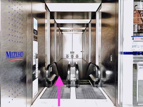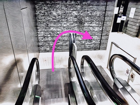 前方のエスカレーターへ