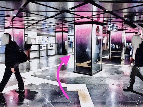 前方の改札に入らず左の通路へ