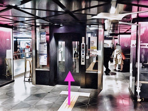 出入口C1のエレベーターで改札階へ