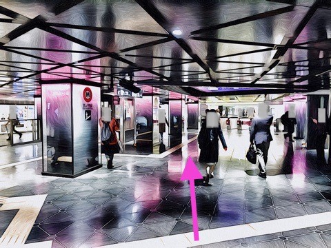 前方の改札に入らず左の通路へ
