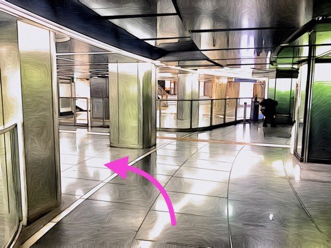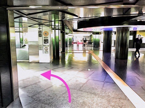 エスカレーターを降り前方へ