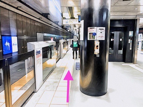 2号車1番扉(先頭から2両目)付近のエスカレーターで改札階へ