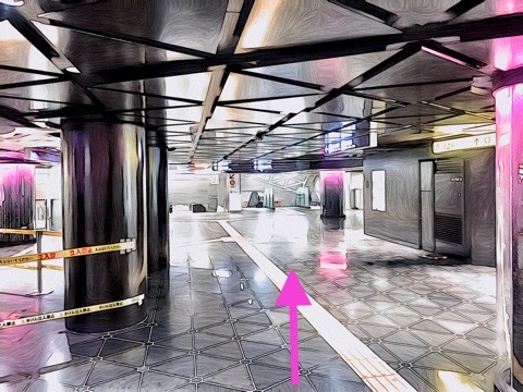 2号車1番扉(先頭から2両目)付近のエスカレーターで改札階へ
