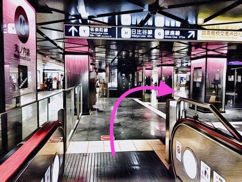 前方のエスカレーターへ
