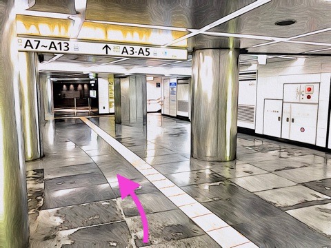 3号車2番扉(先頭から3両目)付近のエレベーターで改札階へ