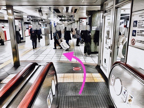 エスカレーターでホーム階へ