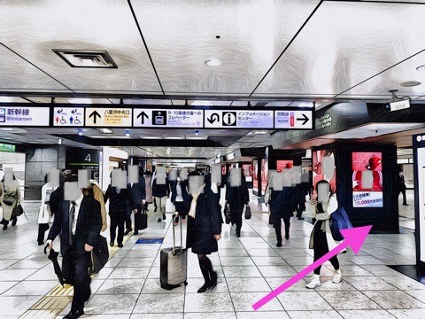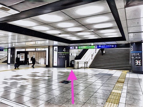 2号車3番扉(先頭から5両目)付近のエスカレーターで改札階へ
