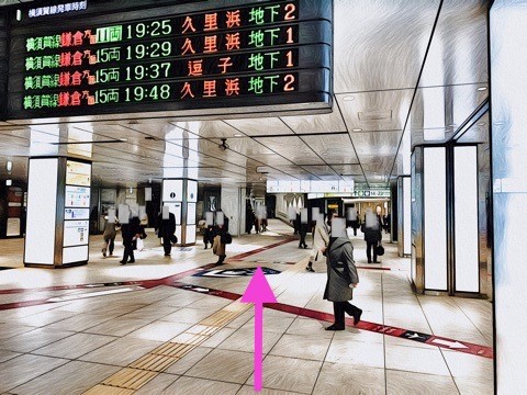 品川・渋谷面行きホーム(9号車2番扉/先頭から9両目)