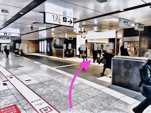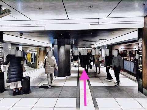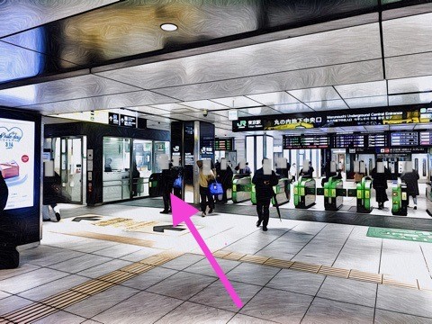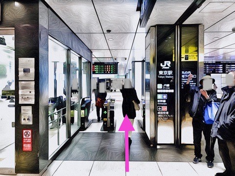 JR東京駅改札の左前方へ