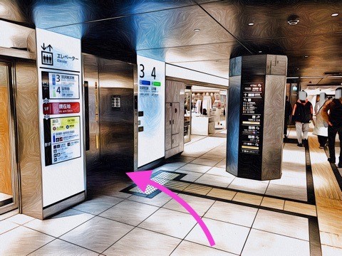 4号車1番扉(先頭から3両目)付近のエレベーターで改札階へ