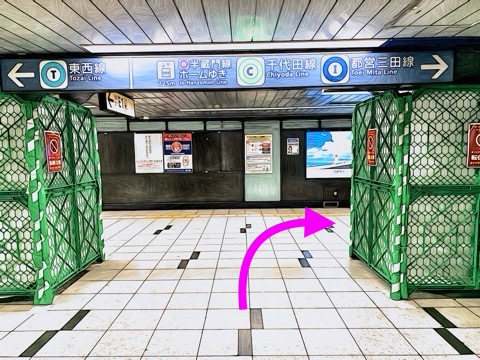 1番線が荻窪方面行きホーム(1号車3番扉/先頭から1両目)