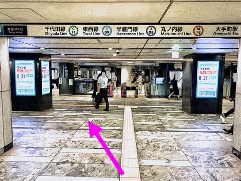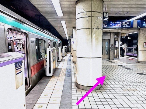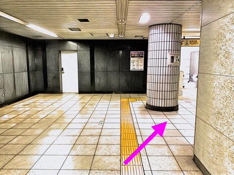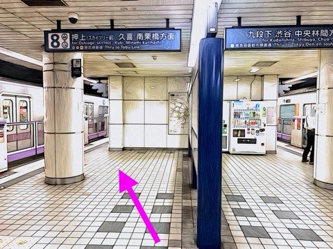 1番線が荻窪方面行きホーム(1号車3番扉/先頭から1両目)