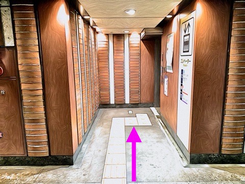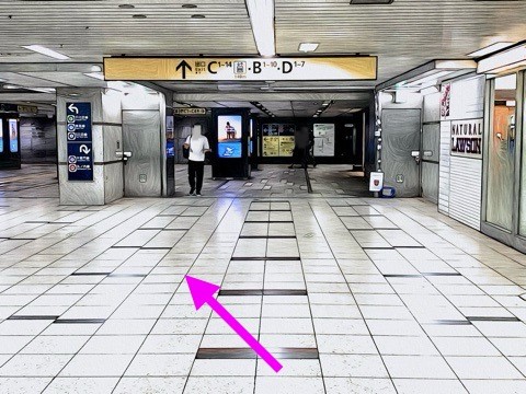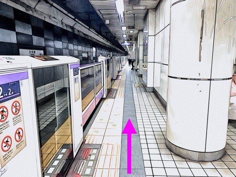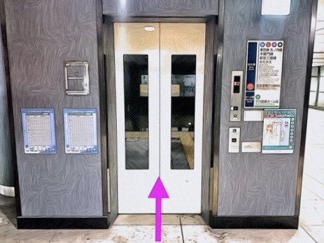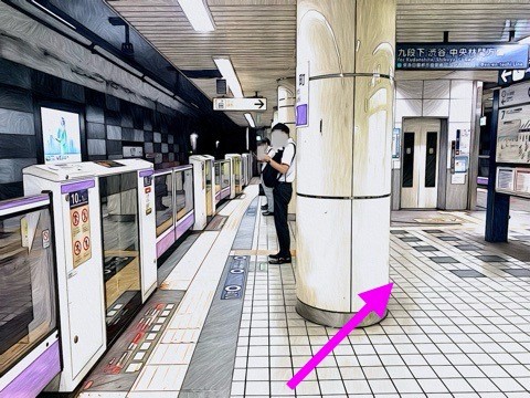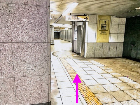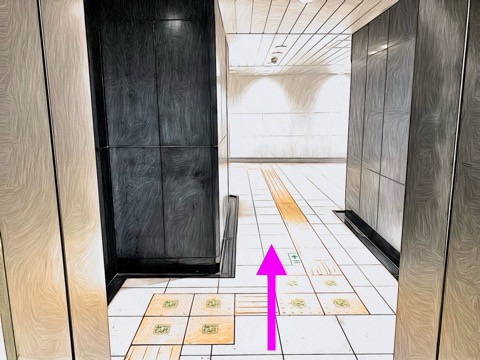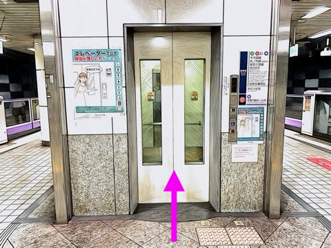 1号車3番扉(先頭から1両目)付近のエレベーターへ