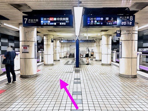 5番線が代々木上原方面行きホーム(5号車4番扉/先頭から5両目)