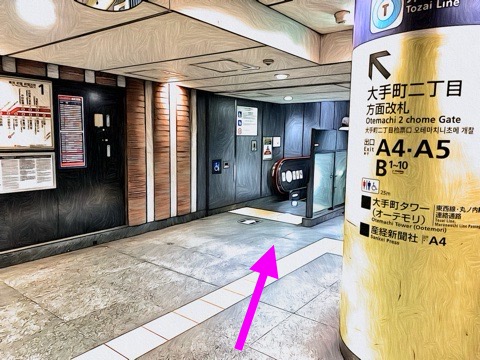 1号車1番扉(先頭から1両目)付近のエスカレーターへ