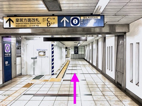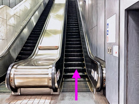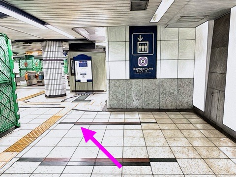 2号車1番扉(先頭から2両目)付近からエスカレーターへ