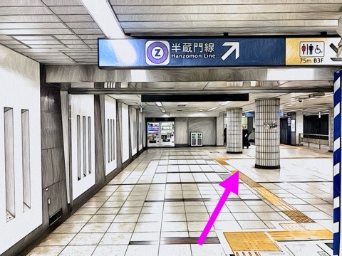 半蔵門線ホームを前方へ
