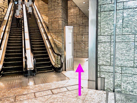 右にあるエレベーターへ
