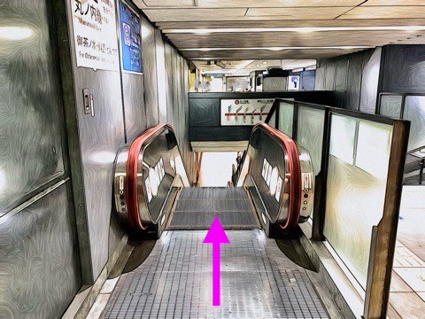 前方にある車いす対応エスカレーターへ