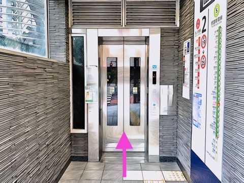 エレベーターbのエレベーターへ