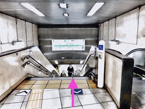 6号車1番扉(先頭から1両目)付近から左前方にある広い改札へ