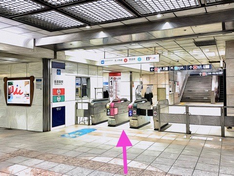 改札を入り右前方へ