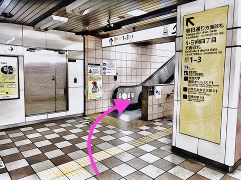エスカレーターで改札階へ