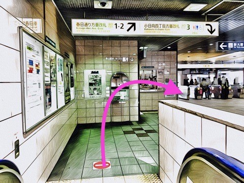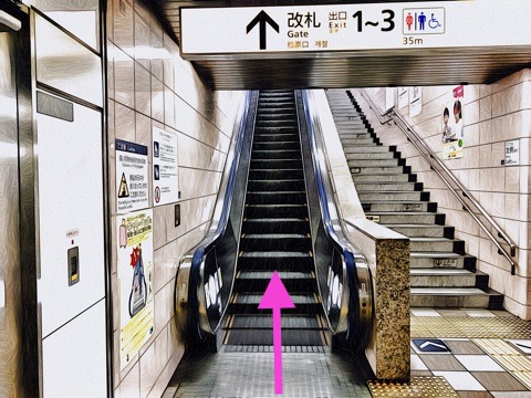エスカレーターを降り右後方へへ