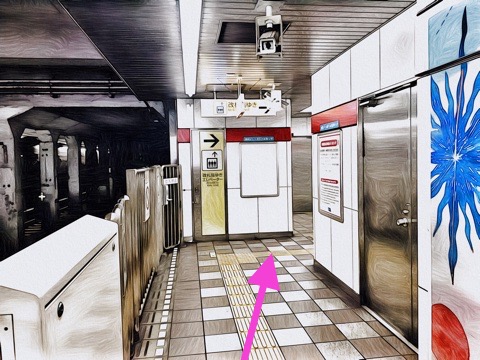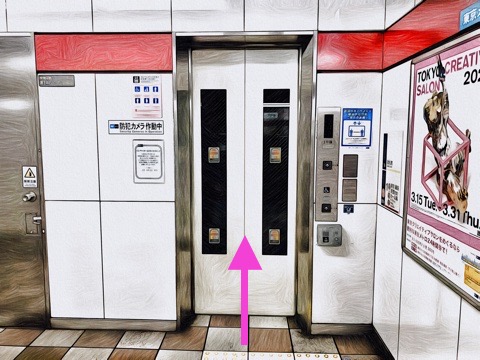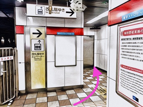 6号車3番扉(先頭から6両目)付近からエレベーターへ