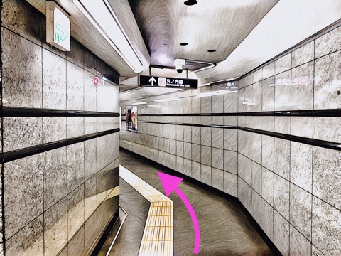 エレベーターを降り通路に沿って前方へ