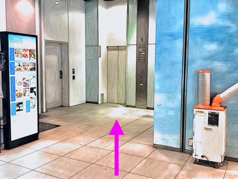 エレベーターを降り左へ
