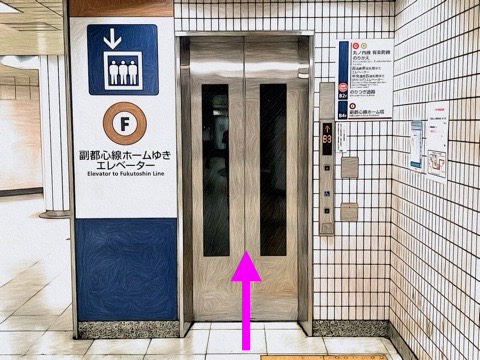 6号車3番扉(先頭から1両目)付近からエレベーターへ