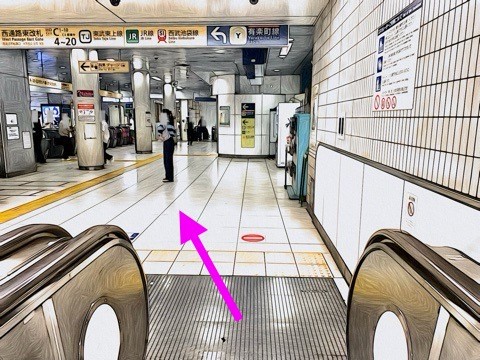 エスカレーターを降り左前方の改札へ