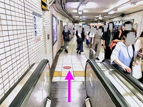 出入口35のエスカレーターへ