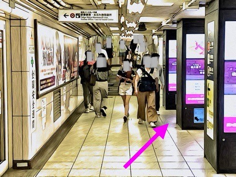 エスカレーターを降り前方へ