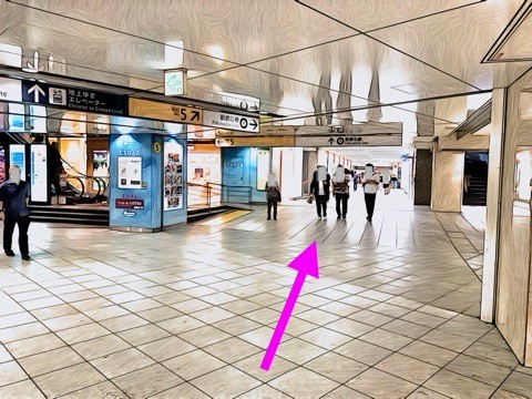 出入口4のエスカレーターへ