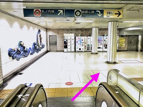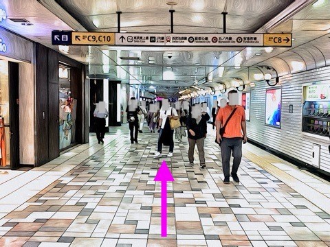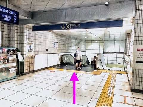 出入口C7のエスカレーターへ