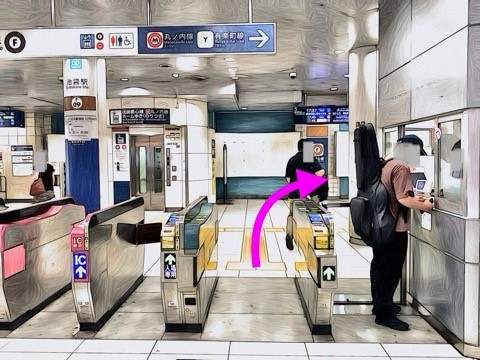 一番右の改札を入り右前方へ