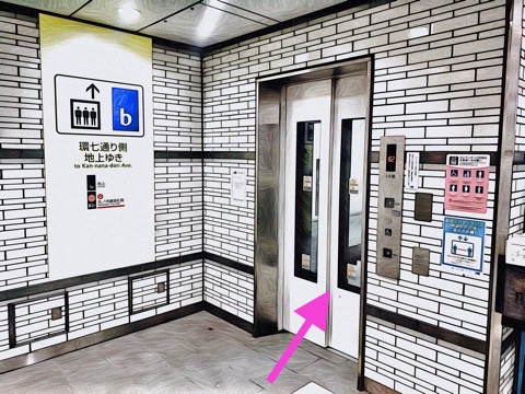 前方のエレベーターへ